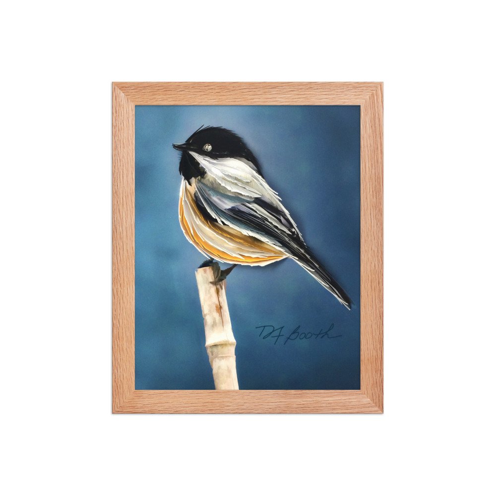 Shop › Black Capped Chickadee – Framed Poster – Matte Finish Image 1 of 9 Image 2 of 9 Image 3 of 9 Image 4 of 9 Image 5 of 9 Image 6 of 9 Image 7 of 9 Image 8 of 9 Image 9 of 9 Black Capped Chickadee – Framed Poster – Matte Finish from $45.00 Sold Out Quilled paper artwork by Different Light Studio. Black Capped Chickadee. Size: Select Size 12×16 18×24 8×10 Frame Color: Select Frame Color Black Red Oak White Sold Out Added! Quilled paper artwork by Different Light Studio. Black Capped Chickadee.