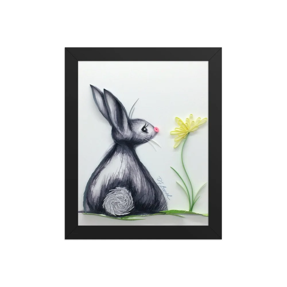 Shop › Cottontail – Framed Poster – Matte Finish Image 1 of 9 Image 2 of 9 Image 3 of 9 Image 4 of 9 Image 5 of 9 Image 6 of 9 Image 7 of 9 Image 8 of 9 Image 9 of 9 Cottontail – Framed Poster – Matte Finish from $45.00 Sold Out Quilled paper artwork by Different Light Studio. Cottontail. Size: Select Size 12×16 18×24 8×10 Frame Color: Select Frame Color Black Red Oak White Sold Out Added! Quilled paper artwork by Different Light Studio. Cottontail.