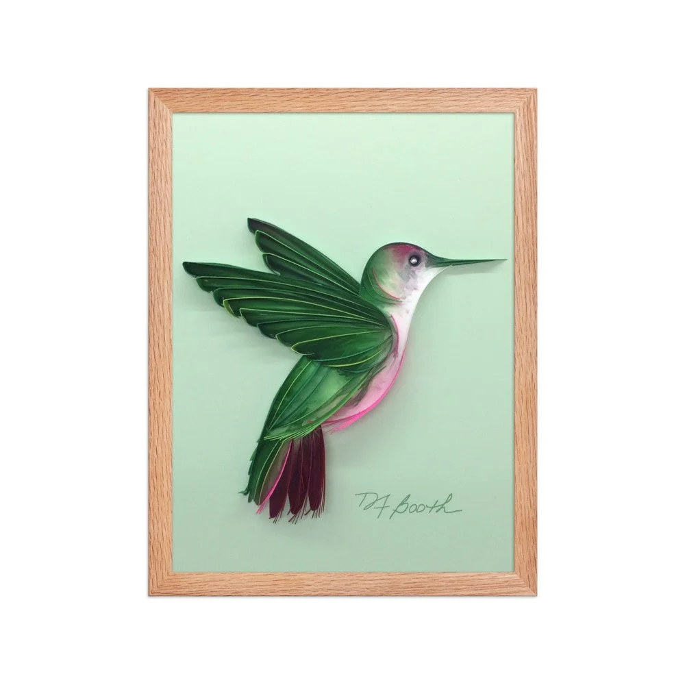 Shop › Hummingbird Green – Framed Poster – Matte Finish Image 1 of 9 Image 2 of 9 Image 3 of 9 Image 4 of 9 Image 5 of 9 Image 6 of 9 Image 7 of 9 Image 8 of 9 Image 9 of 9 Hummingbird Green – Framed Poster – Matte Finish from $45.00 Sold Out Quilled paper artwork by Different Light Studio. Hummingbird Green. Size: Select Size 12×16 18×24 8×10 Frame Color: Select Frame Color Black Red Oak White Sold Out Added! Quilled paper artwork by Different Light Studio. Hummingbird Green.