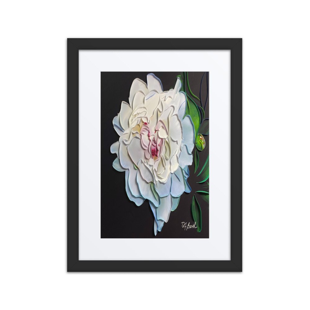 Shop › Plush Peony – Matted & Framed Poster Image 1 of 9 Image 2 of 9 Image 3 of 9 Image 4 of 9 Image 5 of 9 Image 6 of 9 Image 7 of 9 Image 8 of 9 Image 9 of 9 Plush Peony – Matted & Framed Poster from $75.00 Sold Out Quilled paper artwork by Different Light Studio. Plush Peony. Size: Select Size 12×16 16×20 18×24 Frame Color: Select Frame Color Black Red Oak White Sold Out Added! Quilled paper artwork by Different Light Studio. Plush Peony.